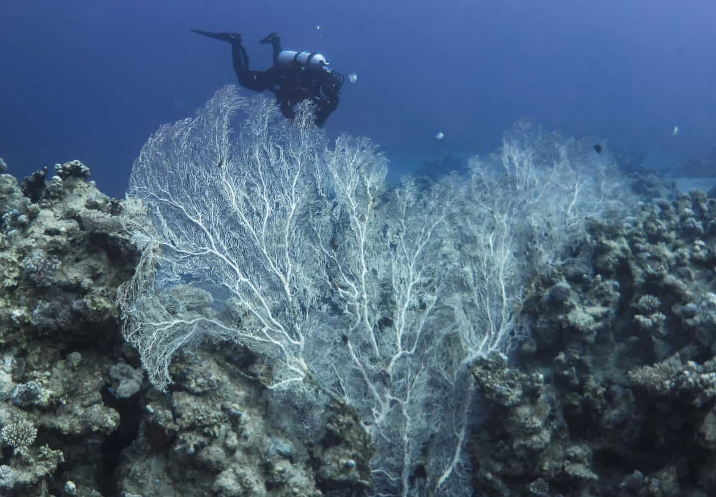 The Blue Hole/Bells is one of the most famous dive sites in the world, it´s also the dive site that started the hype of diving in Dahab. It’s the spot for Free divers, Tec divers and Recreational. Usually one enters this site through an open chimney called the Bells. The name comes from the sound of tanks touching the wall as it’s very narrow, only one diver can go down at a time. Divers exit this chimney at approximately 26m and swim to the right along the outer wall of the Blue Hole where majestic overhangs full of corals are waiting to be marveled. You could also spend the day at the comfort of the cafe while you enjoy multiple different profiles at the same site through the hole shore entrance.