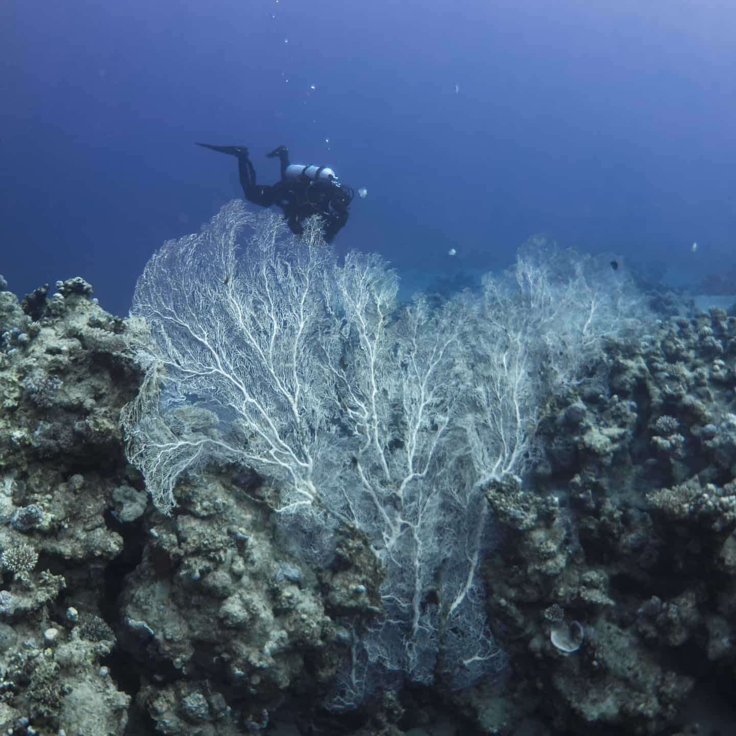 The Canyon dive site is on the way to the Blue Hole. Most likely you’re going to dive here as well when you go to the Blue Hole. You will have a short swim through a shallow sandy lagoon. The exit of this lagoon and the following pinnacles are just breathtaking and will blow your mind. From 5-20m you’ll find a beautiful garden of corals and then discover the canyon itself – a split between the reef going down to 54m. Beautiful soft and hard corals as well as the chance to see Octopus en masse, making this dive truly amazing.