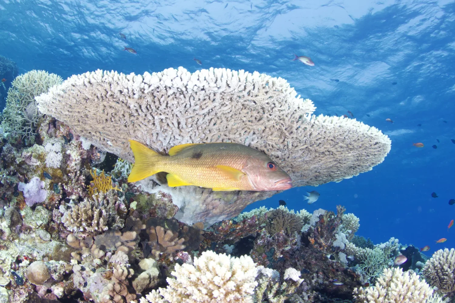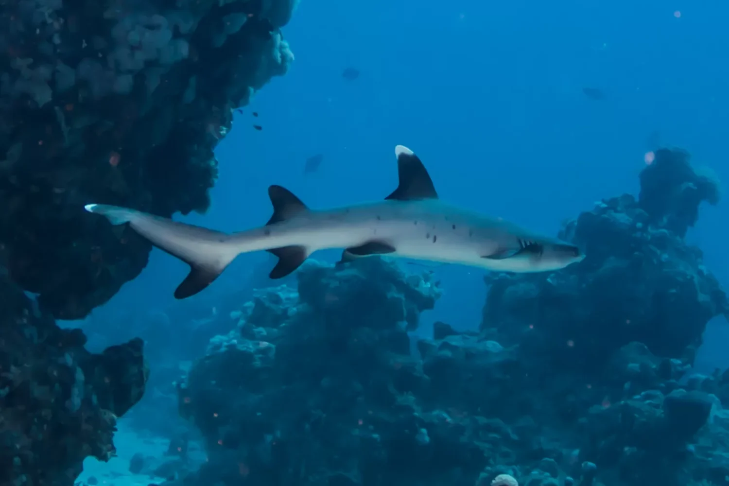 Throughout the dive, remain alert for tuna gliding in from the deep and, if luck is on your side, the graceful white-tip reef sharks patrolling the perimeter of the reef.