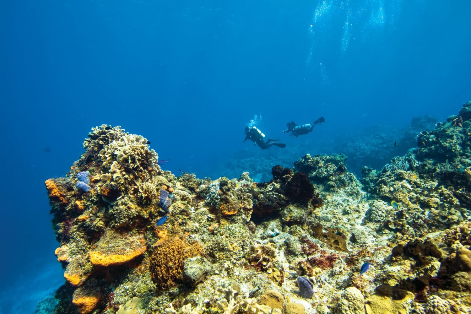 Experienced divers sometimes follow the reef wall, which descends far beyond 100 meters.